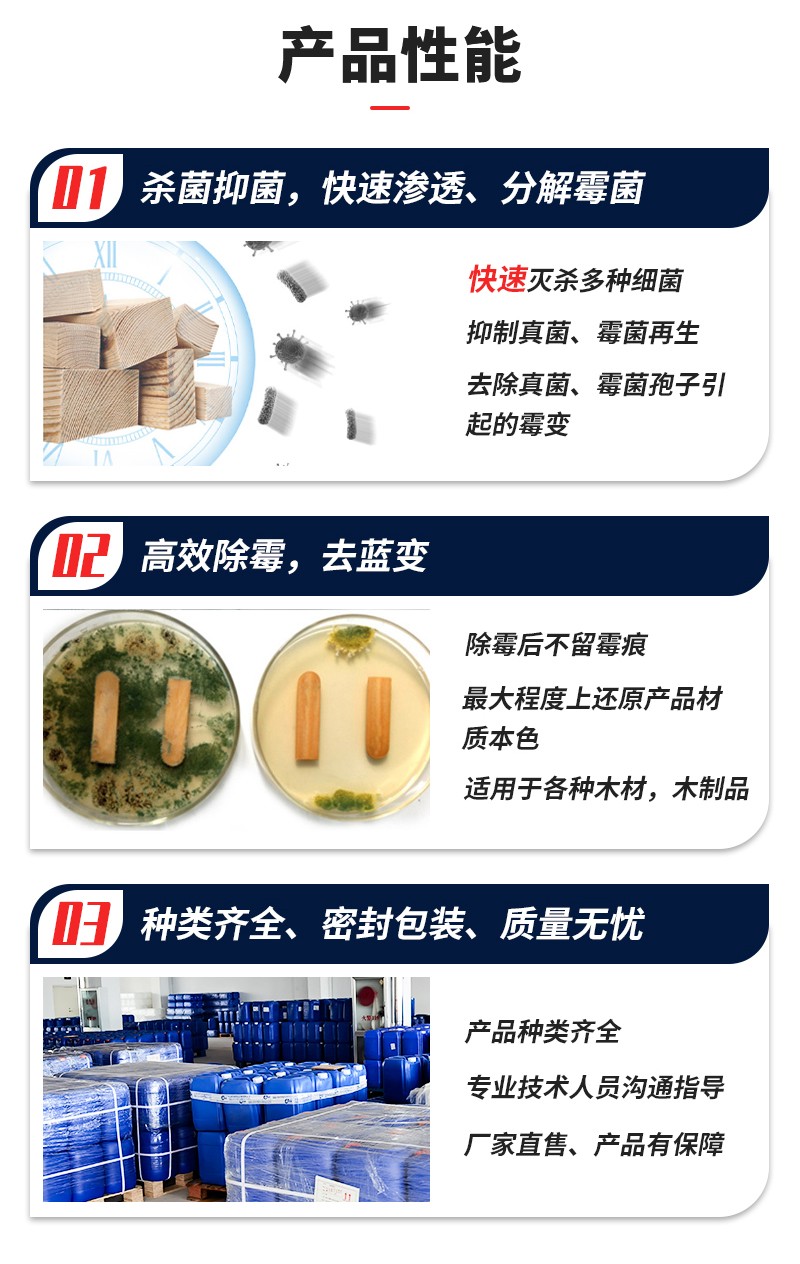 木材除霉剂是新一代高活性除霉去蓝变浓缩液,主要成分为霉菌分解因子、杀菌抑菌剂,可去除多种细菌、真菌蛀虫及霉菌孢子引起的产品霉变。具有强渗透、分解的特点。...