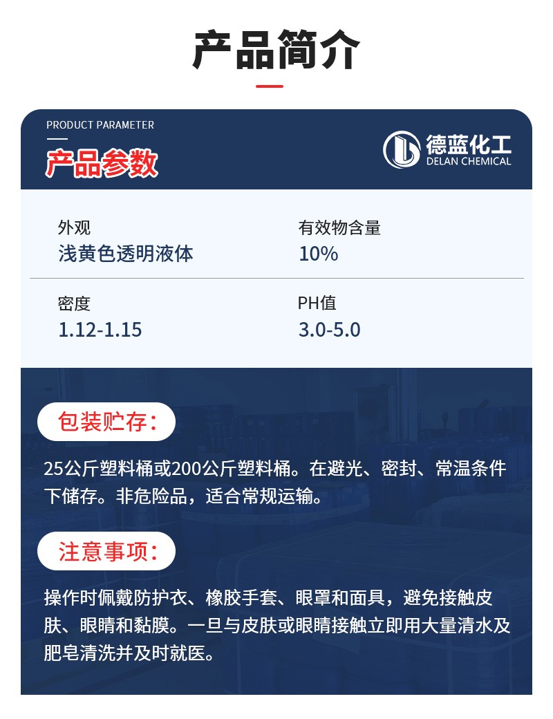 包装储存:采用 25kg 塑料桶包装,或按用户要求包装。应储存在阴凉通风处,保质期为一年。