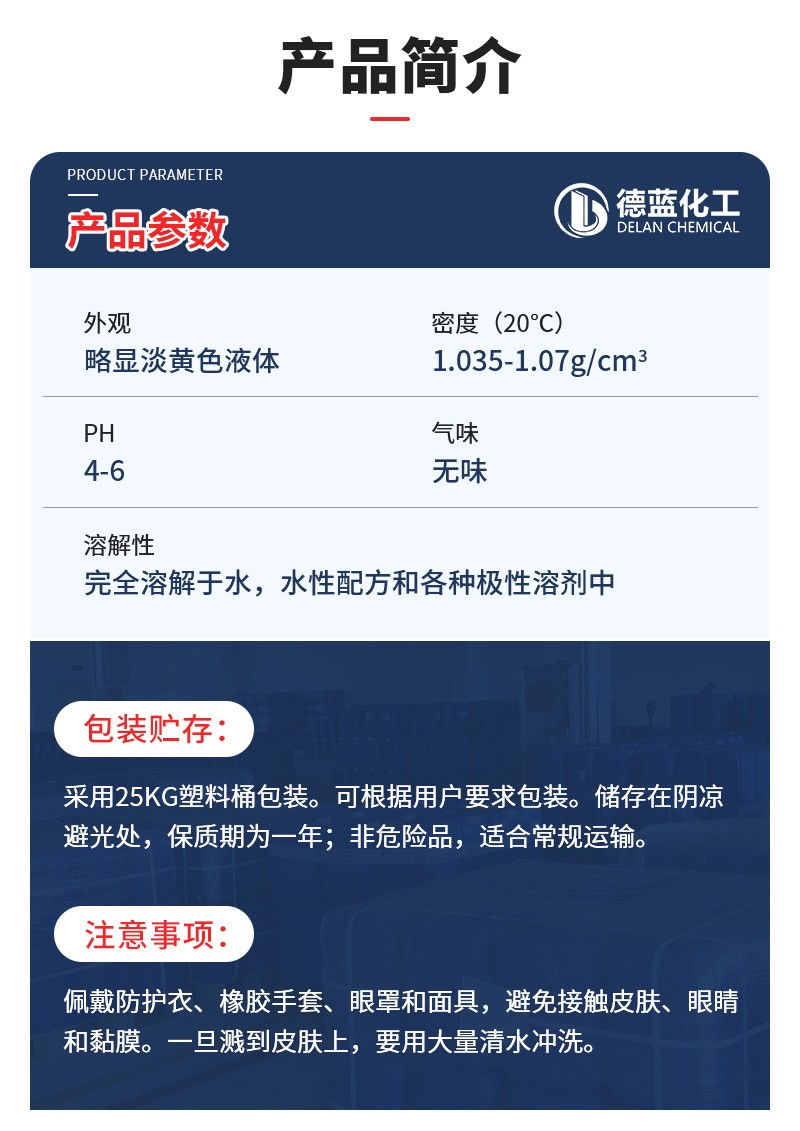 包装储存:25 公斤塑料桶,储存于室内阴凉通风处,避免长期阳光暴晒、产品保质期十二个月。