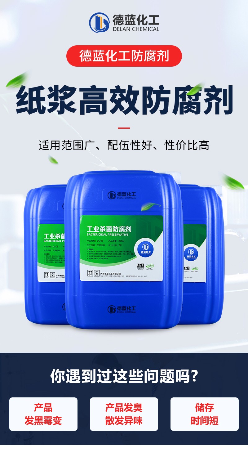 纸浆高效防腐剂DL-901强杀菌效力,产品的活性成份能够穿透微生物的细胞壁,进入细胞内部,并与细胞的核酸(RNA和DNA)上碱基结合。从而抑制或彻底杀死微生物......