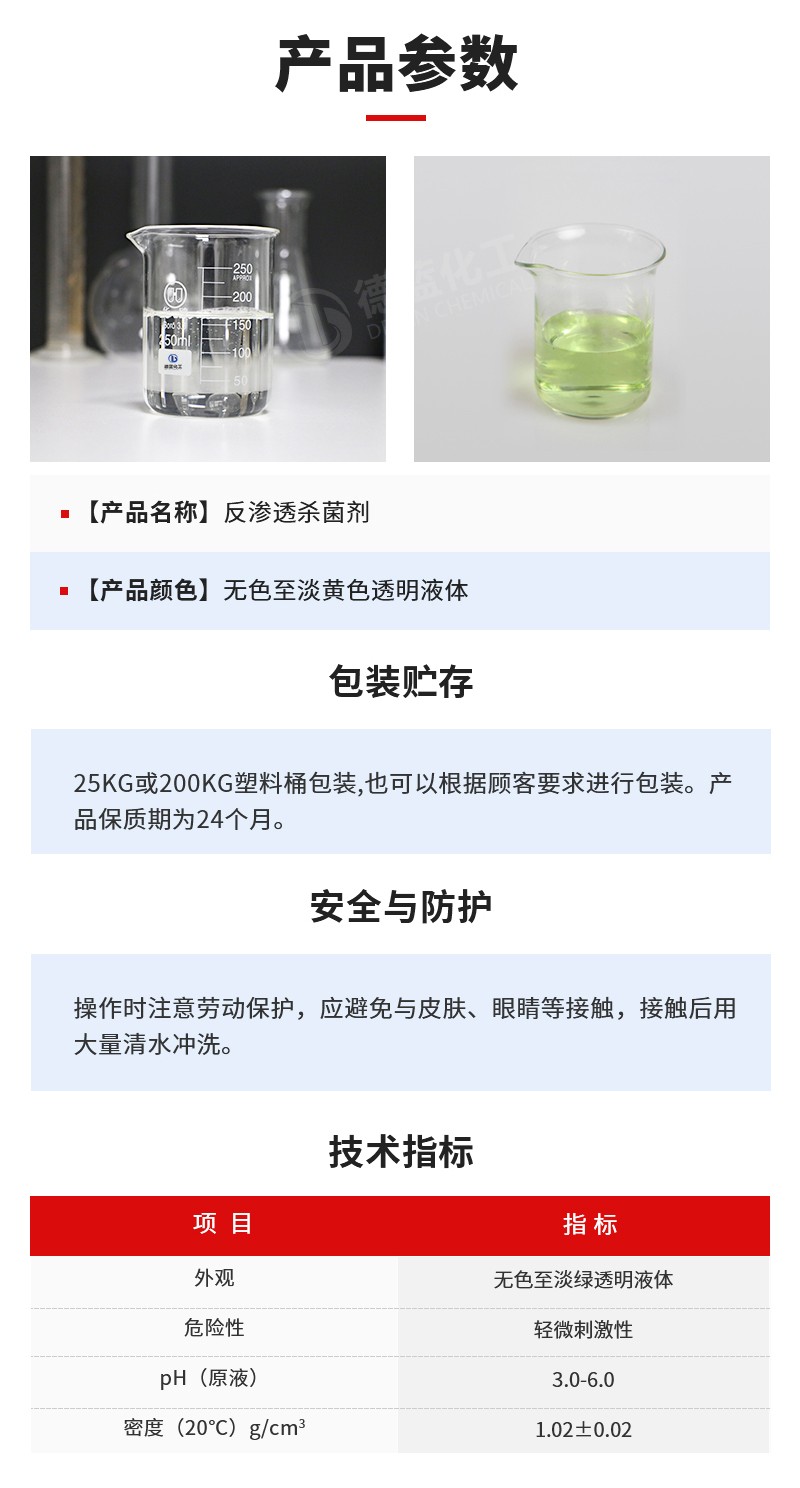 包装储存:DL-381反渗透杀菌剂一般采用25kg塑料桶包装或根据客户具体要求而定。室温避光贮存保质期一年。