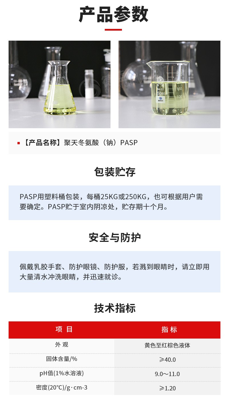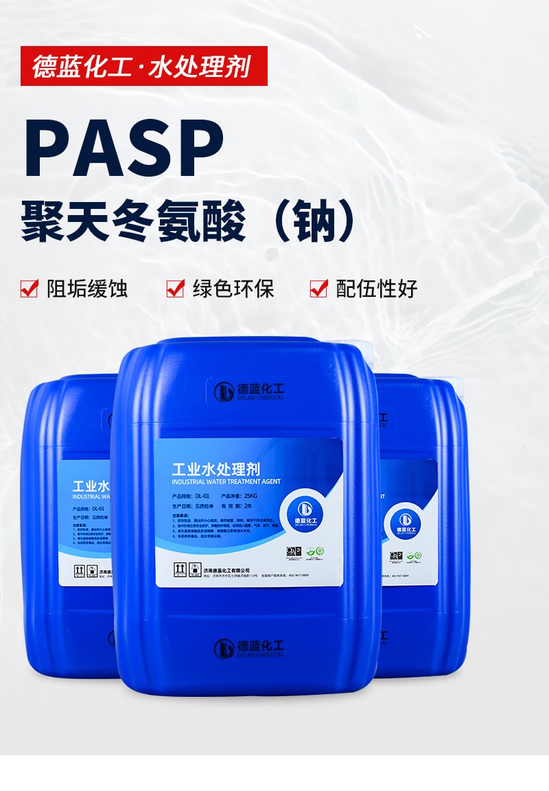 PASP为水溶性聚合物,是一种新型绿色水处理剂,具有无磷、无毒、无公害和可完全生物降解的特性。对离子有极强的螯合能力,具有缓蚀与阻垢双重功效,对碳酸钙、硫酸钙、硫酸钡、磷酸钙等成垢盐类具有良好的阻垢效果,对碳酸钙的阻垢率可达100%。PASP同时具有分散作用并可有效防止金属设备的腐蚀。PASP可替代含磷的水处理剂,以避免水体的富营养化和排放二次污染。...