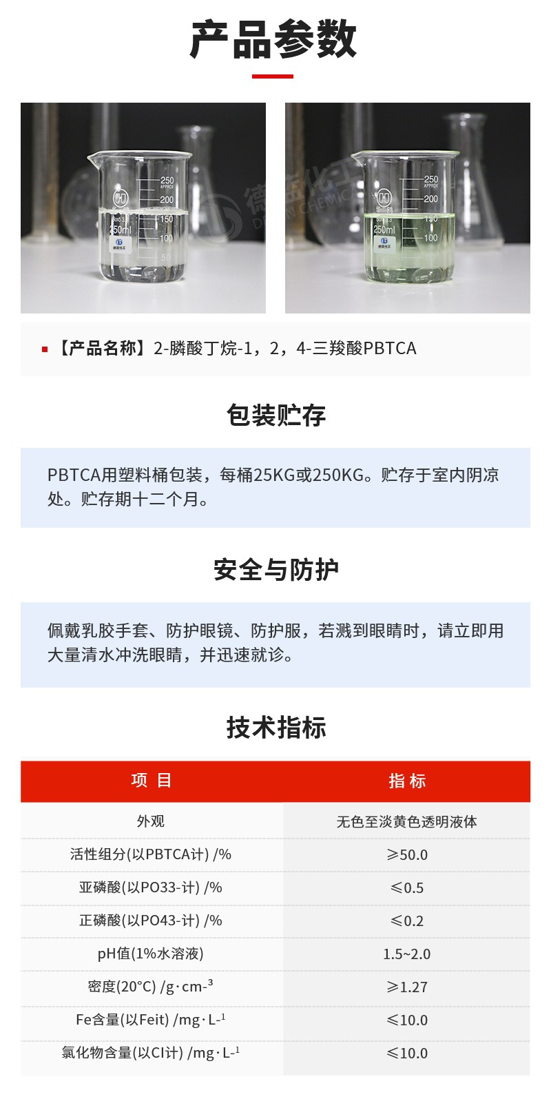 PBTCA含磷量低,由于它具有膦酸和羧酸的结构特性,使其具有良好的阻垢和缓蚀性能,优于常用的有机膦酸,特别在高温下阻垢性能远优于常用的有机膦酸,能提高锌的溶解度,耐氯的氧化性能好,复配协同性好。...