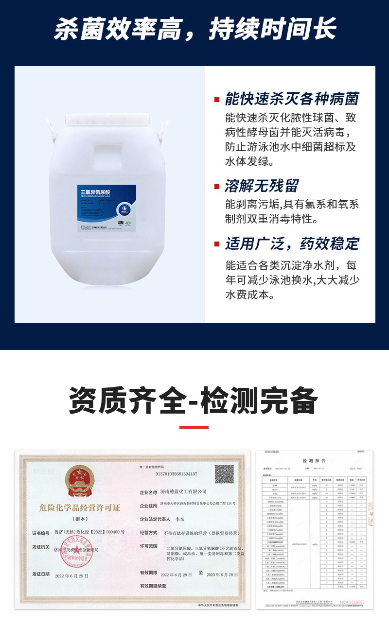 简介:游泳池消毒剂三氯异氰尿酸是一种高效、快速、广谱的消毒剂,被广.....