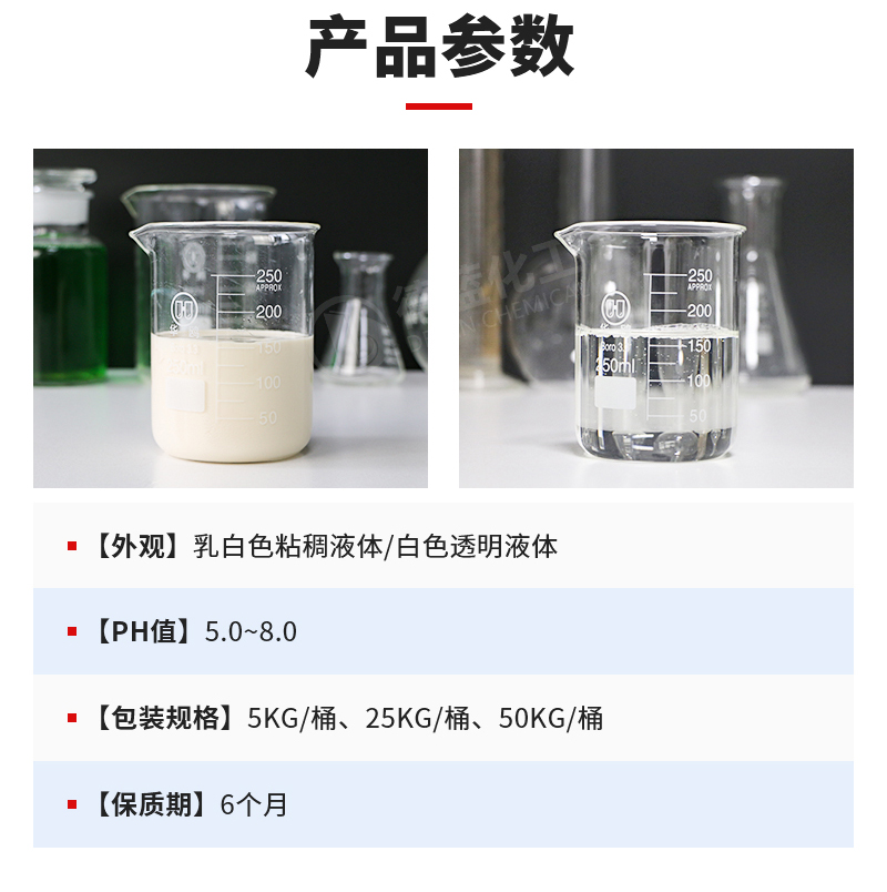 包装储存:采用5KG、25KG、50KG闭口塑料桶装,或根据客户需求包装。 存放于干燥通风的库房内,避免阳光直射。非危险品,常规运输。储存期为6个月。